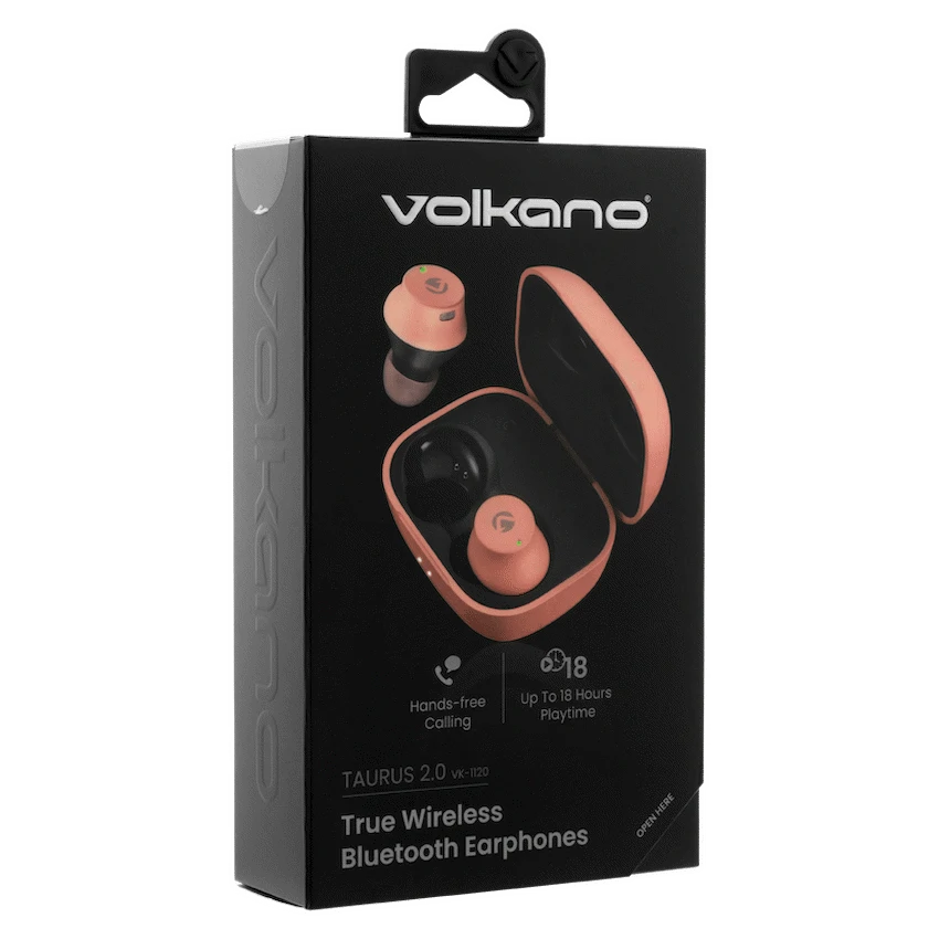Experience the pinnacle of audio excellence with the Volkano Taurus Series 2.0 True Wireless Earphones in a stylish Pink hue. These earbuds redefine convenience and style, offering a range of features tailored for an elevated audio experience.Elevate your audio experience with the Volkano Taurus 2.0 True Wireless Earbuds, where crystal clear sound meets stylish functionality. With Bluetooth 5.2 technology, extended playback, and a water-resistant design, these earbuds redefine convenience and style. The portable charging case ensures you stay powered up throughout the day, allowing you to embrace a wire-free world with Volkano Taurus 2.0 True Wireless Earbuds.Crystal Clear Sound:Indulge in high-fidelity audio powered by 6mm drivers and cutting-edge Bluetooth 5.2 technology, ensuring every note is delivered with precision.True Wireless Freedom:Escape the hassle of tangled wires and revel in the true wireless freedom that the Taurus Series 2.0 earbuds provide.Extended Playback:Enjoy up to 7 hours of continuous music on a single charge, allowing you to immerse yourself in your favorite tunes without interruption.Quick Charging:With only 1.5 hours needed to fully charge the earbuds, stay effortlessly connected throughout your day.Reliable Connectivity:Benefit from stable connectivity within a 10-meter range, courtesy of Bluetooth 5.2 technology.Water-Resistant Design:The IPX4 rating safeguards your earbuds from sweat and light rain, ensuring durability during your active lifestyle.Portable Charging Case:Stay powered up on the go with the 470mAh charging case, providing 3.5 additional charges for extended usage.Comfortable Fit:Designed for enduring comfort during extended listening sessions, the Taurus Series 2.0 earbuds prioritize your enjoyment.Easy Setup:Experience hassle-free pairing with your devices, enabling instant use and seamless connectivity.Stylish and Sleek:Blending functionality with style, the Volkano Taurus Series 2.0 earbuds make a statement with their sleek and fashionable design.Specifications:Bluetooth Version: 5.2Chipset: BTBluetooth Distance: 10mSensitivity: 96dBDriver: 6 mmFrequency Response: 20 Hz – 20 kHzBattery Capacity: 40mAh (earbuds) / 470mAh (charging case)Impedance: 32 OhmCharging Time: 1.5 hoursPlayback Time: Up to 7 hoursCharging Input: 5V DC / 1AIPX Rating: IPX4 (water-resistant)Number of Recharges: 3.5What’s in the box1 x Volkano Pisces 2.0 Series TWS Earphones and Charging Case1 x Charging Cable1 x Instruction Manual3 x Eartips