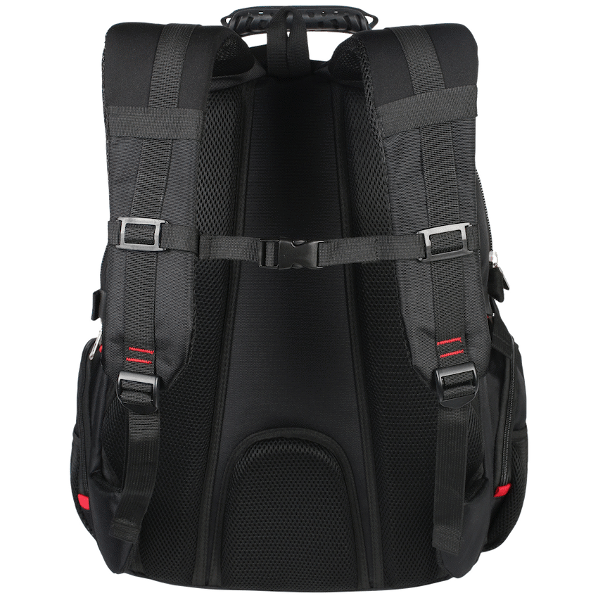 A high-quality laptop backpack with a padded compartment that fits laptops up to 15.6″. Multiple internal and external pockets provide ample storage for organizing chargers, cables, power banks, keys, wallets, water bottles, notebooks, documents, and other daily essentials. Made with durable, water-resistant materials and reinforced stitching for long-lasting use. Features adjustable padded shoulder straps, breathable back padding, a top handle for carrying, side handles for easy lift, and a secure zipper closure for added protection during travel or daily use.