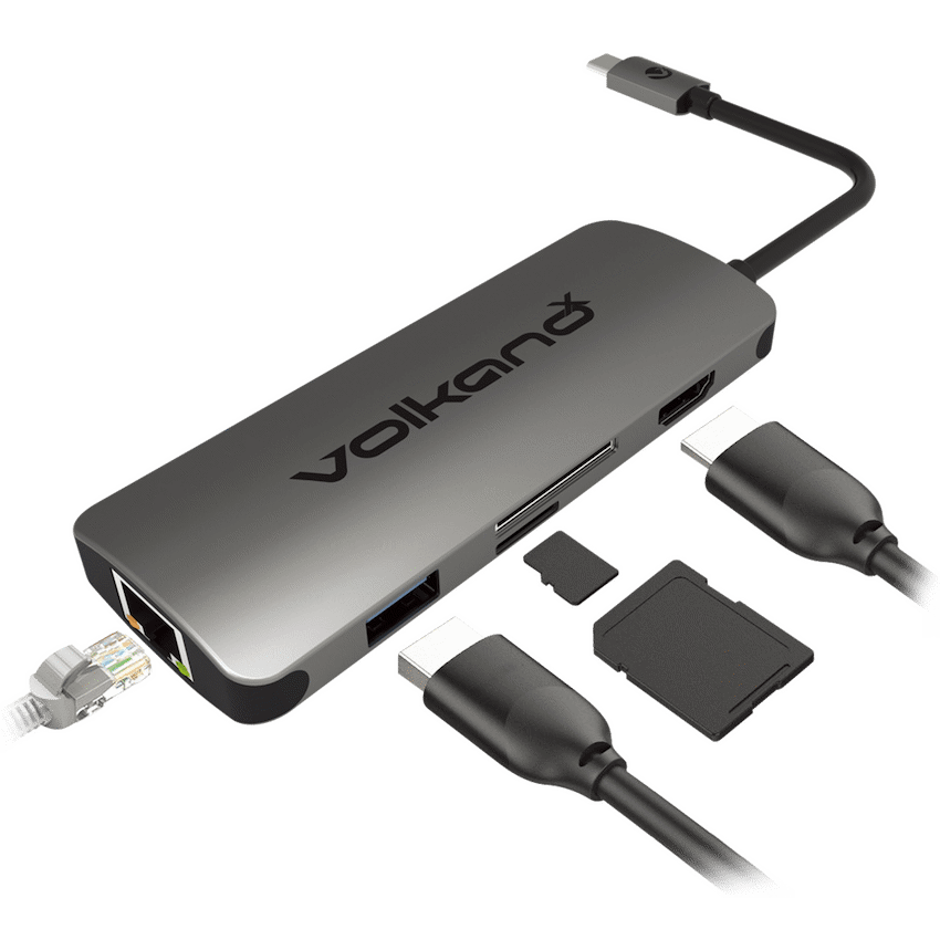 Features:- Expand Your Computer’s USB Type-C Connector to 6 Different Ports- Up to 2.25GBps Data Transfer Speed- Gigabit Ethernet Port- Plug & Play. No drivers or software is needed- Premium Aluminium Construction Expand your laptop’s USB Type-C port into a multi-function hub with the Core Dock Series Multiport Hub from Volkano X. Connect the hub to your laptop or computer’s USB Type-C port and gain six new ports. Plug in to the USB 3.0 port and enjoy data transfer speeds of up to 2.25GBps, connect a LAN cable to the Gigabit Ethernet port, or add a second screen with the UHD 4K HDMI output. The built-in card reader can read SD and Micro SD cards; and you can still charge your device when the dock is in use by connecting your charger to the PD port. Get so much more, just from one port.What’s in the box1 x USB Type-C Multiport Hub