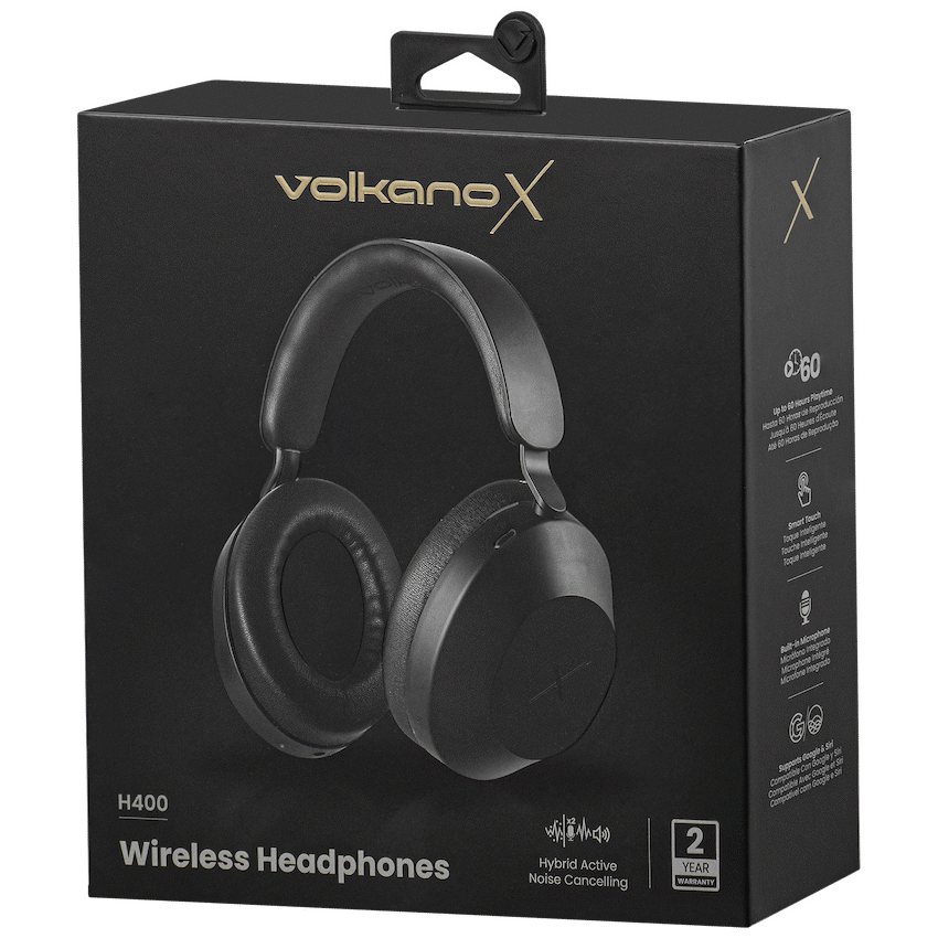 Immerse yourself in your music or calls with the VolkanoX H400 Hybrid Noise Cancelling Headphones, designed to silence distractions and amplify clarity. With advanced Hybrid Active Noise Cancellation, you’ll experience your audio as it was meant to be heard-whether you’re commuting, working, or relaxing. These over-ear headphones deliver up to 60 hours of playtime, letting you enjoy your sound all day and beyond without constantly recharging.Made for flexibility, the H400 series offers wired or wireless listening, so you’re never without your audio-even when the battery runs low. With a built-in microphone, you can take hands-free calls with crystal-clear clarity. Plus, voice assistant readiness puts control just a command away, letting you manage music, calls, or tasks effortlessly.Feature Highlights:Hybrid Noise Cancellation – Block out ambient noise for a focused listening experienceUp to 60 Hours Battery Life – Enjoy uninterrupted playback for daysCrystal-Clear Calls – Built-in mic ensures clear voice qualityWired or Wireless Flexibility – Switch between Bluetooth and AUX to suit your needsVoice Assistant Ready – Activate Siri or Google Assistant with ease40mm Drivers – Deep bass and rich sound across all genresUSB-C Charging – More efficient charging every timeTechnical Specifications:Bluetooth Version: V5.4Chipset: Bluetrum 8931HNoise Reduction: 25dB +/- 3dBBattery Capacity: 400mAhCharging Port: USB Type-CCharging Time: 3-4 HoursPlayback Time: Up to 60 Hours (ANC off, 50% volume)Driver Size: 40mmWhat’s in the Box:VolkanoX H400 Hybrid Noise Cancelling HeadphonesUSB-C Charging CableAux CableAeroplane AdaptorCarry CaseInstruction ManualStay focused, stay connected, and enjoy premium sound-wherever life takes you.