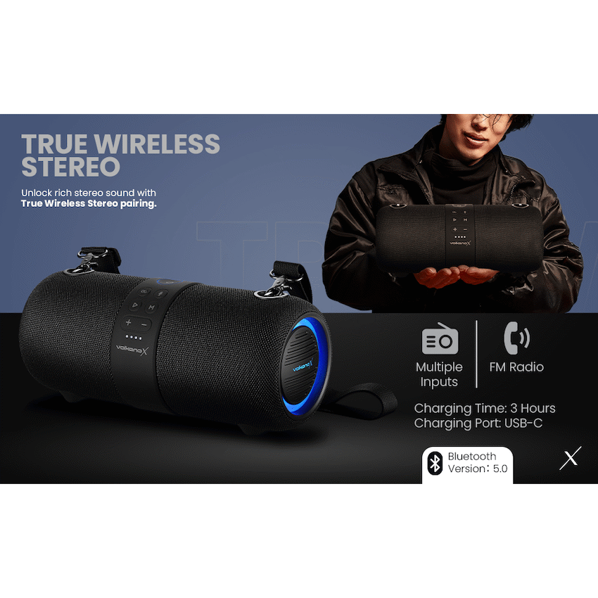 Take your music anywhere with the VolkanoX Python Series Bluetooth Speaker, built for South African users who demand power, portability, and performance. With 20W peak output and dual 3″ drivers delivering 14W RMS, this loud portable Bluetooth speaker packs serious punch for its size-perfect for house parties, braais, or beach days.Built tough with an IPX6 waterproof rating, the Python Series is made to handle splashes, spills, and the outdoors. It also features TWS (True Wireless Stereo) pairing, letting you link two speakers wirelessly for immersive stereo sound. With up to 6.5 hours of playtime, you get extended listening without constant recharging, powered by a robust 3600 mAh battery.Whether you’re after a VolkanoX Bluetooth speaker, need a waterproof Bluetooth speaker for your adventures, or want crisp, high-volume sound with smart wireless features-this speaker delivers.