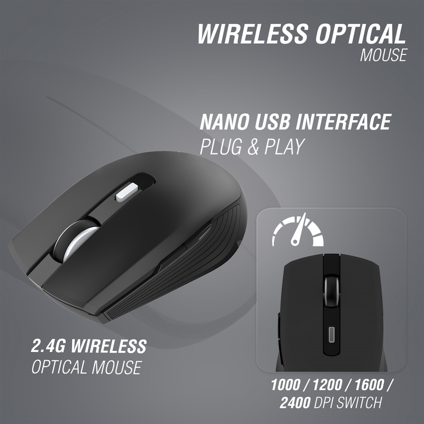 your everyday wireless mouse designed for comfort and control. Simply plug in the nano USB receiver and enjoy stable 2.4GHz connectivity with a working range of up to 10 metres. A quick-switch DPI button lets you toggle between 1000/1200/1600/2400 for pixel-precise edits or fast scrolling. Six easy-to-reach controls-including forward/back side buttons-streamline web browsing and productivity, while the textured scroll wheel gives confident, accurate movement.This VolkanoX wireless mouse is compact yet comfortable, making it ideal for laptops and desktops at home, the office, or campus. It works across Windows, macOS, Linux and Android with true plug-and-play simplicity. Power is hassle-free too: it runs on a single AA battery (included) with power-saving features to stretch life between replacements. If you want a dependable 6 button mouse that just works-this is it.