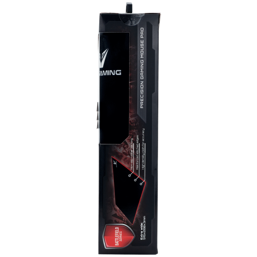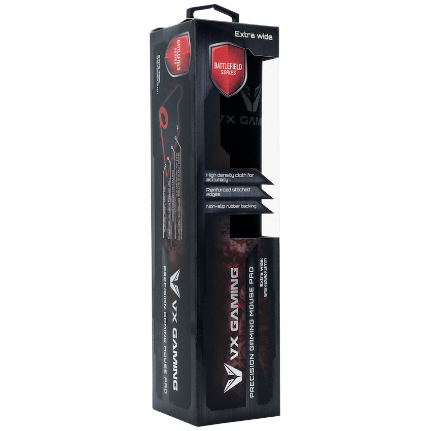 VX Gaming Battlefield Series Gaming MousepadFeatures:- Non-slip rubber backing- High density cloth for accuracy- Reinforced stitched edges.- 915mm 280mm X 3mmWhat’s in the boxMousepad