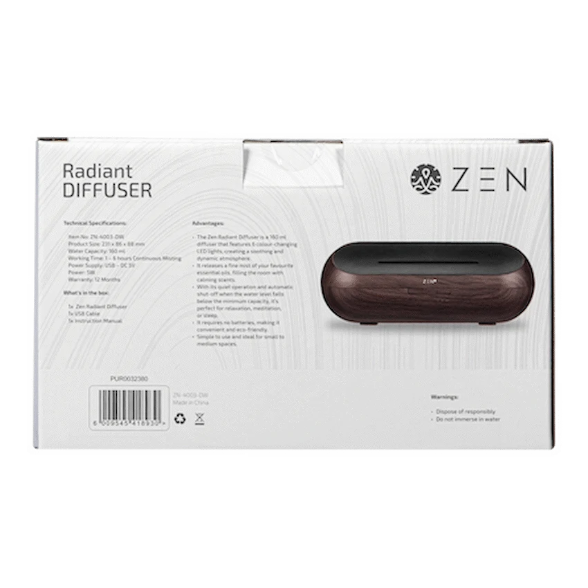 Experience the calming power of the Zen Diffuser, designed to promote relaxation and well-being. Compatible with all Zen Oils, it effortlessly transforms any room into a serene sanctuary.Promotes Relaxation and Stress ReliefCompatible with All Zen OilsSleek, Modern Design for Any Home or Office