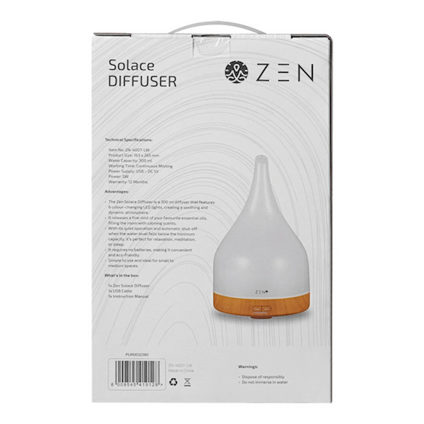 Experience the calming power of the Zen Diffuser, designed to promote relaxation and well-being. Compatible with all Zen Oils, it effortlessly transforms any room into a serene sanctuary.Promotes Relaxation and Stress ReliefCompatible with All Zen OilsSleek, Modern Design for Any Home or Office